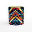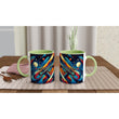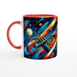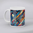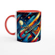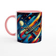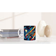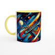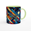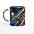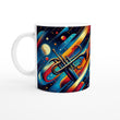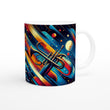 Sip your favorite hot drink from our Abstract Trumpet Mug, featuring a trumpet set against a bold, abstract night sky with colorful shapes and patterns. The glossy white ceramic mug makes the vibrant print stand out, and it's safe for both dishwasher and microwave use, ensuring long-lasting enjoyment.