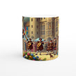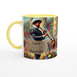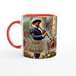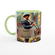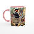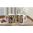 This beautiful ceramic mug is perfect for any event of the day. Your morning coffee, a hot chocolate, or any other hot beverage you enjoy. The mug is glossy white with a colored rim, inside, and handle. The prints come out beautifully and vividly on it. The print retains its quality and luster when used in both microwaves and the dishwasher.